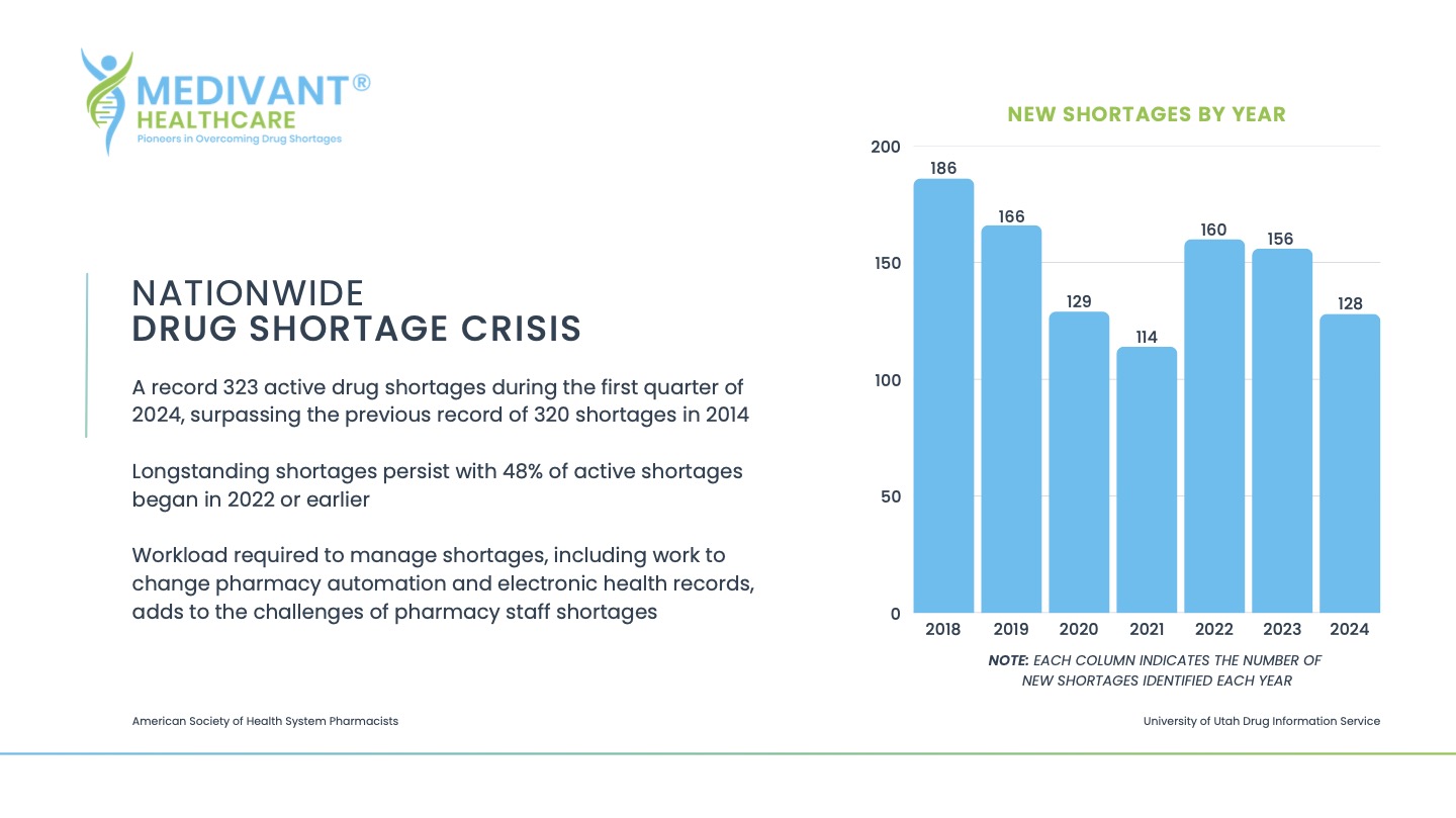 Medivant Healthcare is an FDA-registered 503B outsourcing facility dedicated to solving critical drug shortages in the U.S. healthcare system. With fully automated facilities, Medivant specializes in the production of sterile injectable medications, ensuring consistent supply and uncompromising quality. Medivant's streamlined manufacturing process enables rapid scalability, fulfilling urgent demands while maintaining cost efficiency. By leveraging advanced technology and strict regulatory compliance, Medivant is actively addressing the nation’s medication shortages.
